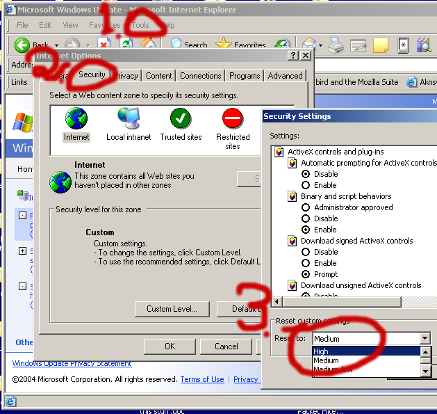 Setting the securitity level in Microsoft Internet Explorer to High: